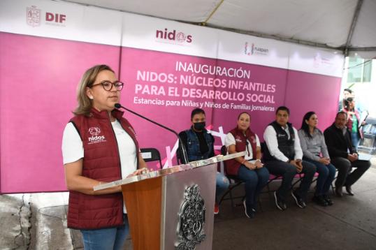 Uruapan, Mich., a 9 de junio del 2022.–Con el firme compromiso de velar por el interés superior de la niñez y la atención a la primera infancia, el Gobierno del Estado que encabeza Alfredo Ramírez Bedolla, a través del Sistema para el Desarrollo Integral de la Familia (DIF) Michoacán llevó a cabo la inauguración del quinto Núcleo Infantil para el Desarrollo Social (NIDOS) en Jicalán, tenencia perteneciente al municipio de Uruapan.Por primera vez Uruapan, cuenta con estancias infantiles para hijas e hijos de familias jornaleras agrícolas, enfocadas principalmente al corte de aguacate y trabajo en empacadoras locales. En NIDOS se les brindará a las niñas y niños seguridad, alimentación de calidad, educación inicial, además de atención médica y psicológica. Durante la inauguración, la presidenta honoraria del DIF Michoacán, Grisel Tello Pimentel señaló que a través de NIDOS se busca fortalecer los vínculos de las familias jornaleras, atender el bienestar y desarrollo integral de la niñez de forma real y directa, con el objetivo de disminuir el estado de vulnerabilidad en el que se encuentran en los campos y contribuir a su desarrollo integral, garantizándoles una infancia feliz, sana y tranquila. Por su parte Ignacio Benjamín Campos Equihua, presidente municipal de Uruapan, reconoció la labor y el trabajo coordinado entre gobiernos para que NIDOS fuera una realidad a tan solo 7 meses de haberse instalado la nueva administración. Reconoció el trabajo coordinado con el Gobierno del Estado en beneficio de la niñez michoacana, el cual es un eje prioritario de la administración.Paula Espinosa Barrientos, directora general del Sistema DIF aseguró que la instalación de los NIDOS en los municipios, ha sido estratégica contemplando aquellas localidades con alta actividad agrícola, con la finalidad de cubrir una necesitad real y urgente para evitar que se sigan vulnerando derechos humanos de las niñas, niños y adolescentes.Agregó que previo a su inauguración a finales del mes de mayo, se realizó la primera capacitación al personal que operará los Núcleos Infantiles para el Desarrollo Social en este municipio, por lo que la estancia operará bajo los mejores regímenes de calidad. Actualmente, se han abierto cinco NIDOS de los 12 que se tienen contemplados para este año. Cabe señalar que el próximo a inaugurar será en Jacona y Zamora a mediados del mes de junio.