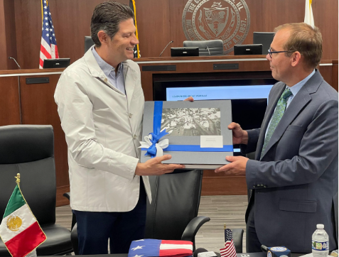 En esta reunión celebrada en la alcaldía de Aurora, John Laesch entregó el Premio a la Excelencia al edil de Morelia por sus esfuerzos para construir puentes, lazos y conexiones entre ambas ciudades.
