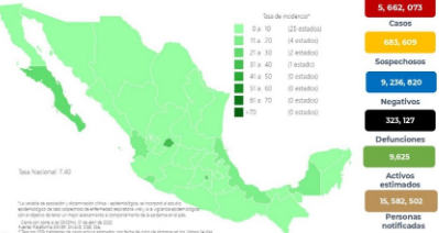 Ciudad de México, a 1 de abril de 2022.-La Secretaría de Salud informó que México acumula 5,662,073, casos de Covid-19, con los 2,538 nuevos contagios registrados en las últimas 24 horas.