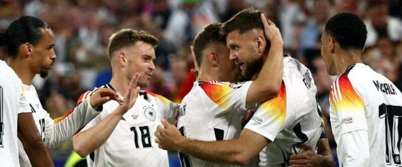 Comparte Facebook Twitter LinkedIn Email Telegram WhatsApp Ciudad de México, a 14 de junio de 2024.-La selección de Alemania arrancó con el pie derecho en la Euro 2024 al humillar 5-1 a Escocia. Los goles del triunfo fueron de: Florian Wirtz, Jamal Musiala, Kai Havertz, Niclas Füllkrug y de Emre Can.