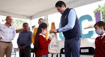 En esta Tenencia se beneficiaron a 100 niñas y niñas con el mismo número de kits de mochilas y útiles escolares que contienen libretas, colores, estuches, lápices, resistol, entre otros artículos.