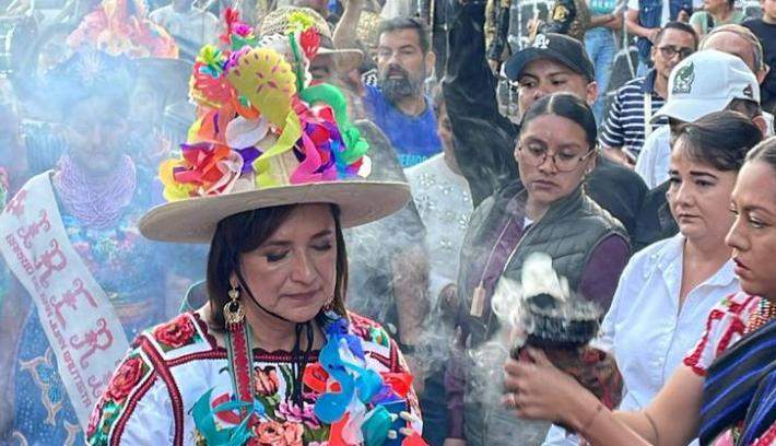 Ciudad de México, a 23 de abril de 2024.-Xóchitl Gálvez, candidata presidencial del PAN, PRI y PRD, y organizadores de su gira de este martes por Chiapas, denunciaron que la delincuencia organizada y los opositores bloquearon la asistencia de seguidores a sus mítines de este día.