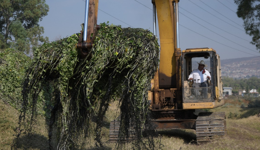 Morelia, Mich., a 7 de abril de 2022.-Con la meta de intervenir 15 kilómetros en ríos y drenes en un trabajo interinstitucional entre la Secretaría de Agricultura, Desarrollo Rural y Medio Ambiente, la Secretaría de Servicios Públicos, el Organismo Operador de Agua Potable, Alcantarillado y Saneamiento y la Secretaría de Obras Públicas de Morelia, se tiene un avance de 700 metros libres de lirio y basura en el Dren de los Itzícuaros y márgenes del Río Grande.