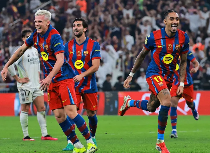 Ciudad de México, a 11 de enero de 2026.-Con doblete de Raphinha, el Barcelona vence al Real Madrid 3-2 y es Bicampeón de la Supercopa de España, en el Estadio King Abdullah de Arabia Saudita.