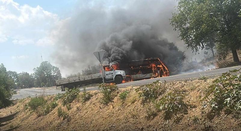 Morelia, Mich., a 23 de abril de 2025.-Delincuentes realizan bloqueos carreteros simultáneos e incendian vehículos, en carreteras de al menos 10 municipios del Estado de Jalisco y Michoacán, así quemaron dos tiendas Oxxo en Apatzingán.