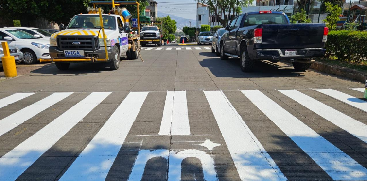 Este día, se realizaron trabajos en la Plaza Morelos de la Tenencia Morelos, donde se llevó a cabo el trazo y balizamiento para delimitar pasos peatonales, rampas para personas con discapacidad, restricciones en esquinas y reductores de velocidad. Estas acciones permiten ordenar la circulación, mejorar la visibilidad de los cruces y brindar mayor seguridad, especialmente a peatones y grupos prioritarios.