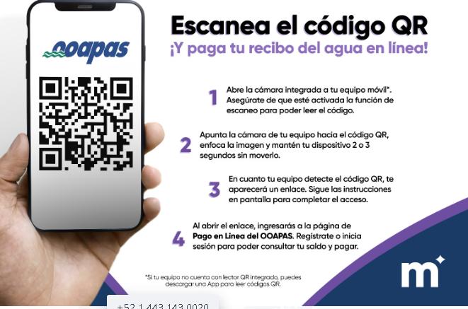 Con el código QR, se accede de inmediato a la página “Pago en Línea” del portal oficial OOAPAS, para iniciar sesión o registrarse, consultar saldo, y pagar con tarjeta de débito o crédito.