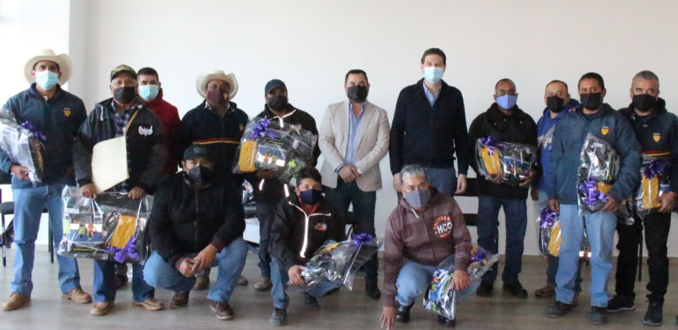 Tal es el caso de los operadores de maquinaria de la Secretaría de Agricultura, Desarrollo Rural y Medio Ambiente, a cargo de Guillermo Marín Chávez, quienes realizan labores de limpieza de drenes y caminos rurales y, a quienes el funcionario municipal entregó este jueves las debidas prendas de protección que ayudarán a garantizar su seguridad y salud.