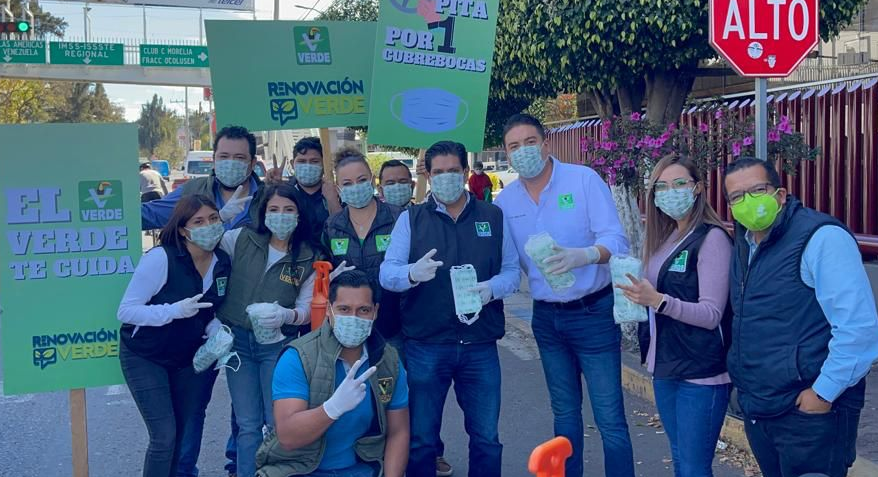 El vividor político, Ernesto Núñez Aguilar, en el crucero de las avenidas Camelinas y Enrique Ramírez inició su precampaña, acompañado del dirigente municipal del PVEM en Morelia, Juan Carlos Velasco Procell, supuestamente para mantener presente en el colectivo social la importancia de acatar las medidas sanitarias para mermar los contagios de Covid-19 en Morelia.