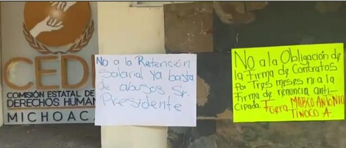La virtual salida de Tinoco Alvarez se aceleró, después de que ayer fueron tomadas las instalaciones de la CEDH por trabajadores inconformes por las constantes violaciones a sus derechos laborales, situación que ya habían denunciado ante legisladores locales.