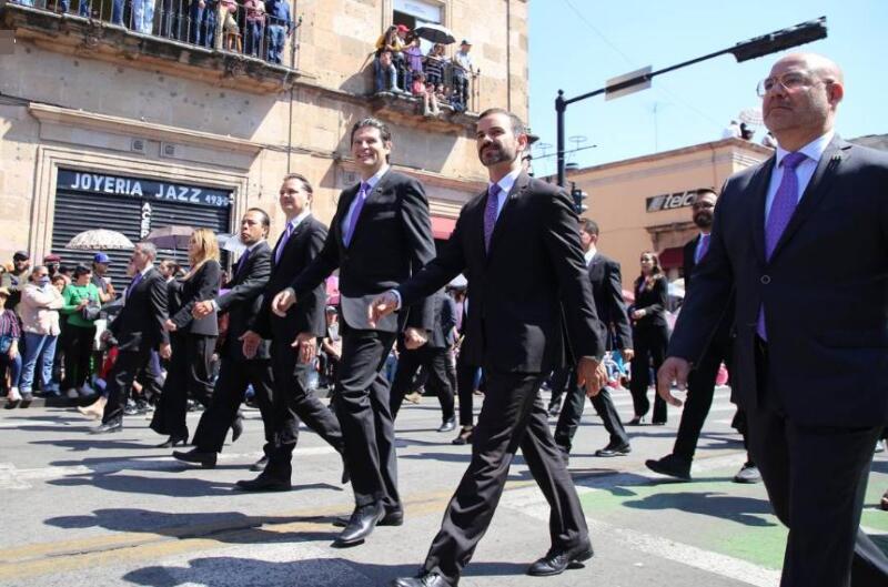 A lo largo de la emblemática avenida Madero, el presidente municipal, Alfonso Martínez comenzó el trayecto de los contingentes, acompañado por integrantes del Gabinete y del Ayuntamiento capitalino.