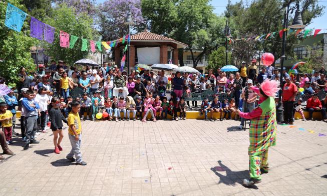 El primer evento se realizó en la plaza principal de la tenencia de Tiripetío, donde la Secretaría de Obras Públicas y el Instituto Municipal de Planeación prepararon el escenario circense para recibir a los pequeñines, que disfrutaron del entretenimiento con el show del payaso Chocolatín.