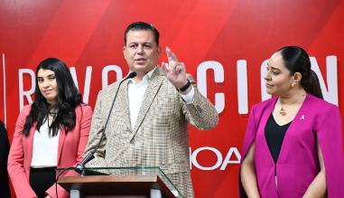 Estuvieron en la rueda de prensa, Santiago Sánchez Bautista, secretario técnico de la Presidencia; Alejandro Bribiesca Gil, secretario de Acción Electoral, así como la secretaria de Finanzas y Administración, Berenice Álvarez Álvarez.