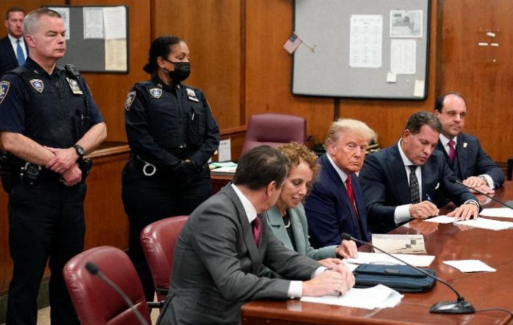 Ciudad de México, a 4 de abril de 2023.-Donald Trump se declaró “no culpable” de los 34 cargos en su contra derivados del pago de un soborno de 130 mil dólares a la actriz del cine para adultos Stormy Daniels durante su campaña presidencial 2016 para comprar su silencio por una presunta relación extramarital que sostuvo con ella y que el exmandatario reportó como minutas profesionales.