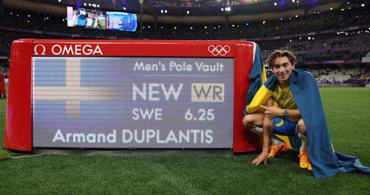 En el tercer intento, Duplantis, que había logrado la medalla de oro, superó los 6,25 metros para hacer estallar a 80 mil espectadores en el Stade de France.