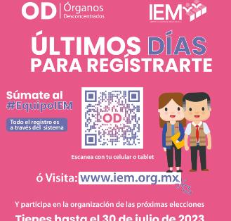 Morelia, Mich., a 28 de julio de 2023. El próximo domingo 30 de julio se cierra el registro para que la ciudadanía michoacana interesada en participar en la organización de las próximas elecciones desde sus municipios, integrando los Comités Distritales y Municipales del Instituto Electoral de Michoacán (IEM) para el proceso electoral ordinario local 2023-2024, el cual se podrá realizar de manera virtual a través del siguiente enlace: https://integracionod.iem.org.mx/