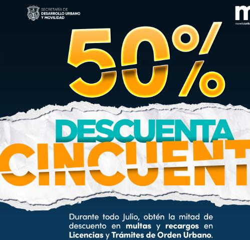 Morelia, Mich., a 1° de julio de 2025.-Con el objetivo de apoyar a la ciudadanía y facilitar la regularización de trámites, el Gobierno de Morelia bajo las instrucciones del presidente Alfonso Martínez Alcázar, lanza “¡Descuenta 50%!”, una campaña especial de condonación de recargos y multas, que estará vigente del 1° al 31 de julio de 2025, dirigida a personas que tengan adeudos en tres rubros importantes: trámites urbanos, construcción o vivienda, y licencias de funcionamiento.