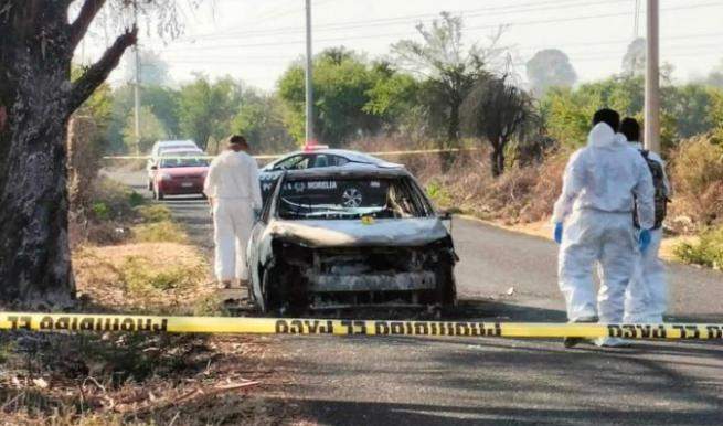 Morelia, Mich., a 14 de abril de 2024.-Tres personas fueron encontradas calcinadas dentro de un vehículo, el cual estaba sobre la carretera Tacícuaro-San Nicolás Obispo, en la zona poniente de Morelia.