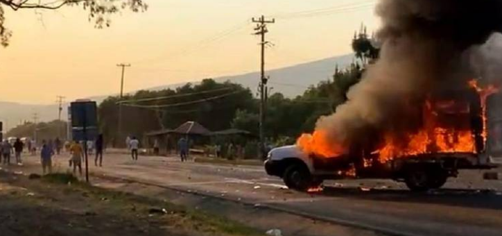 Morelia, Mich., a 3 de abril de 2022.-Habitantes de Carapan del municipio de Chilchota, que están a favor y los que están en contra del autogobierno se enfrentaron a golpes, tras los resultados de la consulta popular realizada el pasado 31 de marzo.