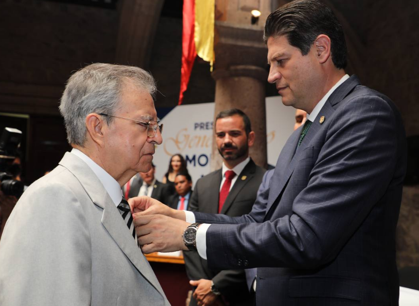 “Esa característica de docencia, nos hace resaltar más este evento. Sin duda alguna encontramos en usted todas las virtudes por las que se otorga esta presea, porque usted pasó por el ámbito educativo, legislativo y judicial; tanta enseñanza y tanto aprendizaje para todas las generaciones que usted a formado en las aulas de la Universidad Michoacana”, expresó el alcalde.