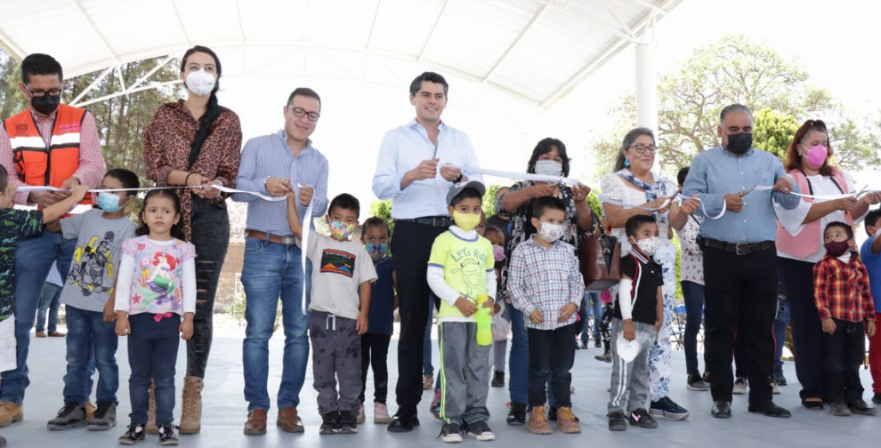 Zitácuaro, Mich., a 12 de mayo del 2022.-En el preescolar Panamericano de La Encarnación, el alcalde Toño Ixtláhuac inauguró la construcción del domo y patio cívico en beneficio de toda la comunidad educativa.