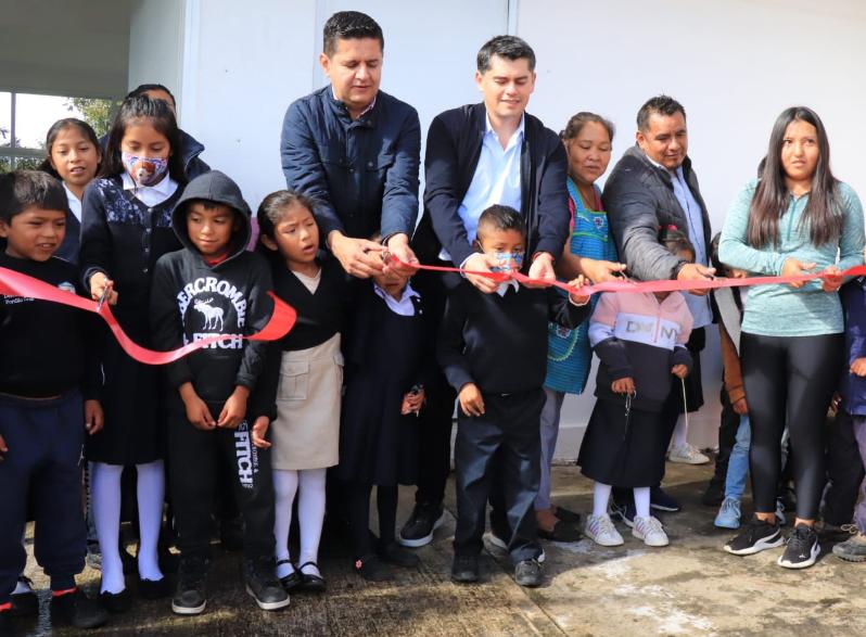 Zitácuaro, Mich., a 8 de septiembre del 2022.-Toño Ixtláhuac inauguró un aula en la escuela primaria indígena Juan de la Barrera, en la primera manzana de San Felipe los Alzati y un muro de contención en el preescolar indígena, Lázaro Cárdenas, en esta misma tenencia.