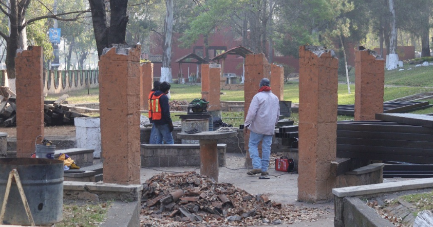 Morelia, Mich., a 12 de enero de 2022.-Con la finalidad de darle un nuevo y mejorado rostro al parque “Los Cenadores”, conocido así por las y los morelianos que se reúnen para convivir con familiares y amigos, el Ayuntamiento de Morelia, trabaja en la rehabilitación del espacio recreativo llamado “Santa Cecilia”.