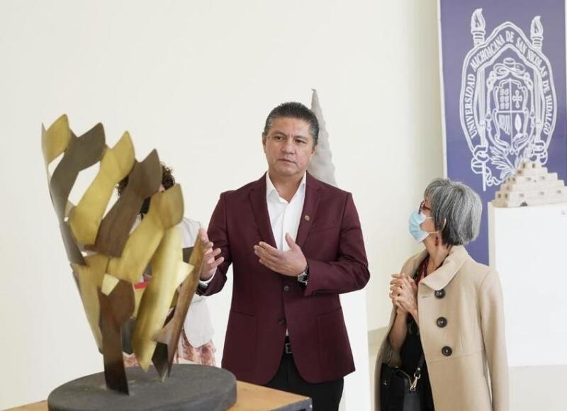 Morelia, Mich., a 4 de octubre de 2022.-El Rector de la Universidad Michoacana de San Nicolás de Hidalgo (UMSNH), Raúl Cárdenas Navarro, inauguró la exposición “Abstracciones 3D” de estudiantes, egresadas, profesoras y profesores de la Licenciatura en Artes Visuales de la Facultad Popular de Bellas Artes.