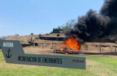 Lo anterior, como resultado de las acciones efectuadas por elementos de la SEMAR, así como con la participación de la población a través de denuncias ciudadanas para combatir el narcotráfico, se llevó a cabo la incineración y destrucción en Lázaro Cárdenas, Michoacán.