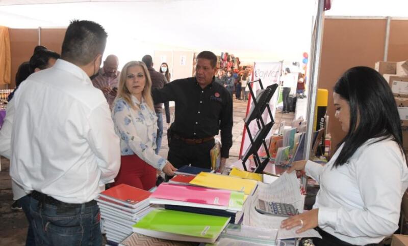 Morelia, Mich., a 18 de agosto del 2022.-A un año de gobierno del presidente municipal Alfonso Martínez Alcázar, se han sumado esfuerzos para trabajar de la mano con diversas dependencias para reactivar la economía de las familias y papelerías morelianas, en ese sentido se promovió el apoyo a este sector económico y este jueves se inauguró la 12ª Expo Regreso a Clases en la plaza Valladolid, la cual se realizará del 18 al 21 de agosto, en este lugar, en donde los padres de familia encontrarán los precios más justos y un descuento de hasta el 30 por ciento.