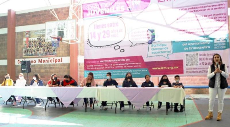 Los diálogos se desarrollaron con dos mesas en las que participaron 73 alumnos de 5 telesecundarias y telebachilleratos de las diferentes comunidades que integran el municipio de Ziracuaretiro, donde se les compartieron las siguientes preguntas: ¿Cuál política pública favorecería la participación de la juventud?, ¿Sobre qué temas y de qué manera te gustaría ser tomado o tomada en cuenta en tu Municipio?, asimismo, compartieron propuestas para incentivar la participación de tu municipio.