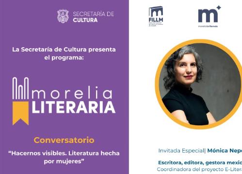 • Conversatorio “Hacernos visibles. Literatura hecha por mujeres”. 16:30 horas. Andador El Nigromante. Con Mónica Nepote. Participan: Karla Cerriteño, Georgina Saucedo e Ismene Mercado.