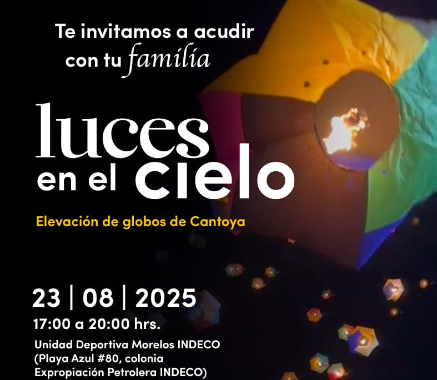 Morelia, Mich., a 19 de agosto de 2025.- El Gobierno de Morelia que encabeza el presidente municipal, Alfonso Martínez Alcázar, por medio de su Secretaría de Cultura (SeCultura) invita al evento de elevación de globos de cantoya “Luces en el cielo”, el próximo sábado 23 de agosto, de 16:00 a 20:00 horas, en la Unidad Deportiva Morelos Indeco.