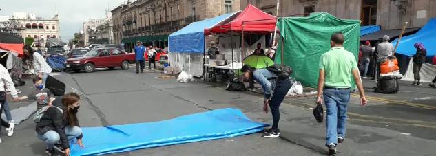 Morelia, Mich., a 15 de julio de 2022.-Los integrantes de Poder de Base de la Coordinadora Nacional de Trabajadores de la Educación retiraron esta mañana el plantón que mantenían desde hace un mes en el centro histórico de la capital michoacana.