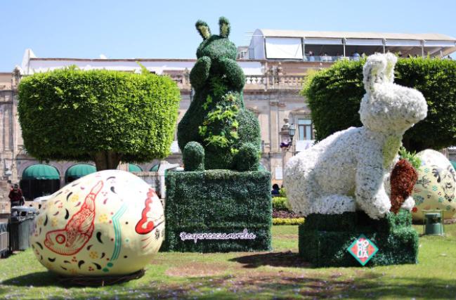 Explicó que además de los huevos de pascua, se instalaron figuras de conejos gigantes, convirtiendo nuevamente esta plaza en un sitio espectacular dentro del programa de actividades y eventos que el Gobierno Municipal tiene preparados para celebrar este periodo vacacional.