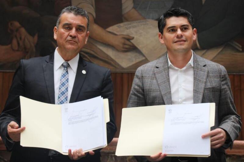 Zitácuaro, Mich., a 19 de septiembre de 2022.-Gracias al convenio de colaboración firmado entre el Ayuntamiento de Zitácuaro, encabezado por el alcalde Toño Ixtláhuac, y la Universidad Virtual del Estado de Michoacán, los habitantes del municipio, empleados municipales y sus familias, podrán tener acceso a becas de hasta 30 por ciento de descuento, para estudiar a distancia, cualquiera de las 10 carreras que oferta dicho plantel de nivel superior.