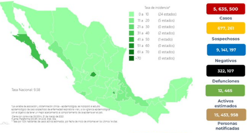 La dependencia dio a conocer que el país tiene un acumulado de casos de coronavirus de 5 millones 635 mil 500 y las muertes se incrementaron a 322 mil 107.