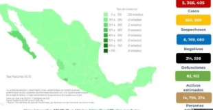 La dependencia dio a conocer que el país acumula 5 millones 366 mil 405 casos, y suma 314 mil 598 decesos desde el inicio de la pandemia.