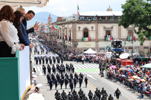 Acompañado por integrantes del Ayuntamiento, funcionarios y funcionarios del Gabinete, y la escolta del municipio, el Alcalde encabezó el desfile y abrió paso a la participación de escuelas de nivel básico, telebachillerato, instituciones privadas, y la Universidad Michoacana de San Nicolás de Hidalgo, así como agrupamientos de la Guardia Nacional, Guardia Civil y Policía Morelia, que marcharon a bordo de patrullas y motocicletas.