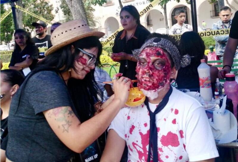 El evento comenzó a las tres de la tarde en la Plaza Morelos, donde se colocaron varios stands, principalmente para realizar maquillajes básicos y más, elaborados con temática zombie o sobreviviente a un costo accesible.