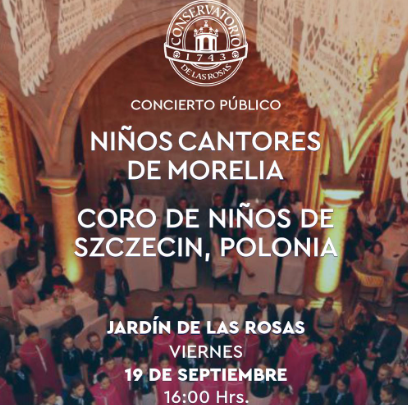 Morelia, Mich., a 19 de septiembre de 2025.–El DIF Morelia encabezado por la presidenta honoraria, Paola Delgadillo Hernández, invita a las familias y a toda la ciudadanía a disfrutar este viernes de un concierto público gratuito en el Jardín de las Rosas: a partir de las 16:00 horas, el público podrá deleitarse con la presentación del Coro de Niños de Szczecin, Polonia, y de los Niños Cantores de Morelia, dos agrupaciones de excelencia que unen tradición, talento y esperanza en un mismo escenario.