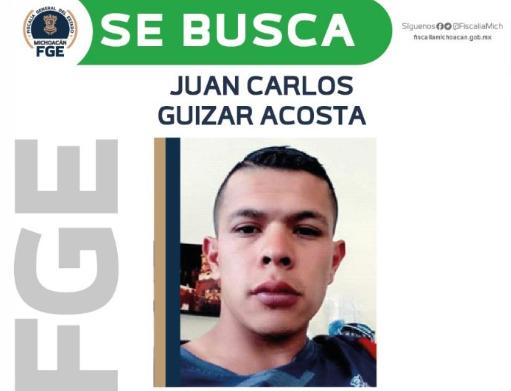 Morelia, Mich., a 3 de mayo de 2023.-La Fiscalía General del Estado de Michoacán (FGE) expidió el acuerdo por el que se emite el Ofrecimiento y Entrega de Recompensa, para quienes aporten información fidedigna, útil y oportuna que conduzca a la localización de Carlos Guizar Acosta, víctima del delito de desaparición cometida por particulares.
