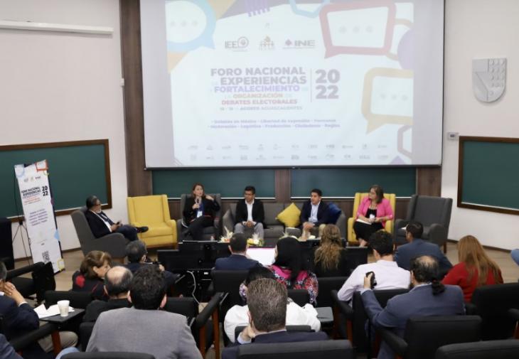 Morelia, Mich., a jueves 19 de agosto de 2022.-Con el objeto de compartir experiencias y promover una reflexión entre los Organismos Públicos Locales y el Instituto Nacional Electoral (INE) sobre las experiencias en materia de debates, de cara a ejercicios democráticos futuros, el Instituto Electoral de Michoacán (IEM), participó en el Foro Nacional de Experiencias y Fortalecimiento en la Organización de Debates Electorales.