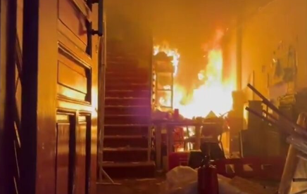 Morelia, Mich., 3 de noviembre de 2025. – La marcha en memoria de Bernardo Bravo y Carlos Manzo, en el municipio de Apatzingán, terminó con quemas dentro de Palacio Municipal.