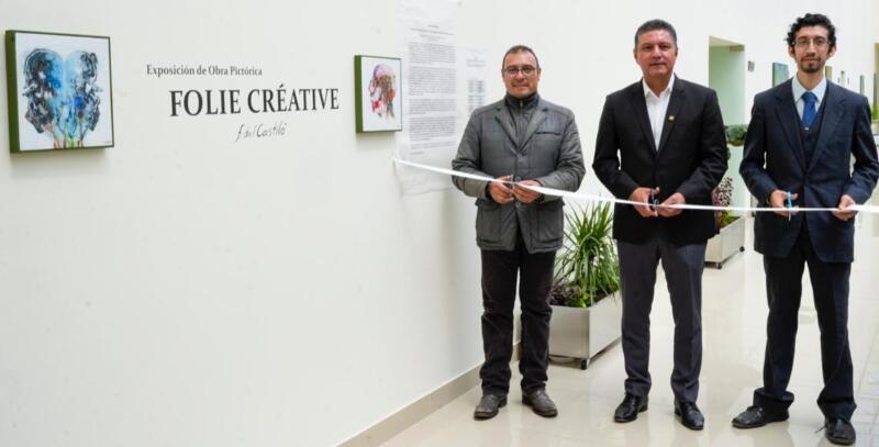 Morelia, Mich., a 10 de octubre de 2022.-Este lunes, el rector de la Universidad Michoacana de San Nicolás de Hidalgo (UMSNH), Raúl Cárdenas Navarro, inauguró la exposición “Folie Créative: personificación de la sintomatología de pacientes con trastorno mental” del artista Felipe del Castillo, egresado de la Facultad Popular de Bellas Artes.