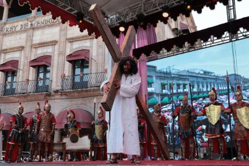 Morelia, Mich., a 18 de abril de 2025.-Nuevamente, el Centro Histórico de Morelia fue el epicentro cultural y artístico al reunir a miles de personas en torno a la representación del Viacrucis, como parte de las actividades que el Gobierno del Presidente Municipal, Alfonso Martínez Alcázar, promueve para celebrar la Semana Santa.