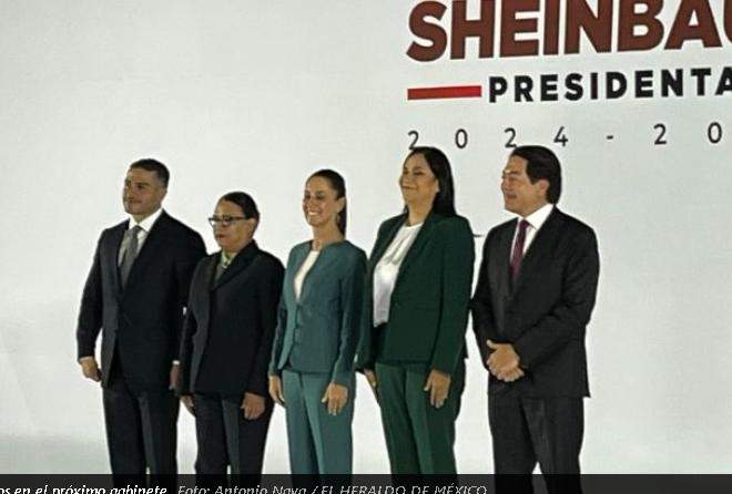 Ciudad de México, a 4 de junio de 2024.-La virtual presidenta Claudia Sheinbaum presentó el tercer bloque de funcionarios que estarán en su gabinete: Rosa Icela Rodriguez (Gobernación), Mario Delgado (SEP), Omar García Harfuch (SSPC) y Ariadna Montiel (Bienestar).
