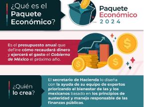 Ciudad de México, a 8 de septiembre de 2023.-El día de hoy, la Secretaría de Hacienda y Crédito Público entregó al H. Congreso de la Unión el Paquete Económico para el ejercicio fiscal 2024. Este paquete está integrado por los Criterios Generales de Política Económica (CGPE), la Iniciativa de Ley de Ingresos de la Federación (ILIF) y el Proyecto de Presupuesto de Egresos de la Federación (PPEF).