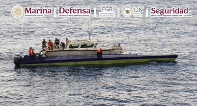 Ciudad de México, a 19 de febrero de 2026.-Elementos de la Armada de México interceptó un semisumergible en las costas de Colima que transportaba 179 bultos con un peso de cuatro toneladas de cocaína y detuvieron a tres personas.
