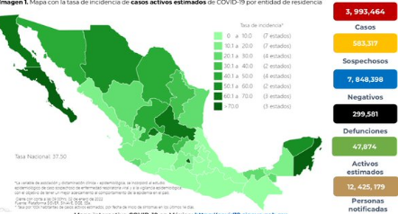La dependencia dio a conocer que se registraron también 37 muertes en ese mismo lapso de tiempo, con las cuales la cifra de defunciones a causa del nuevo coronavirus se eleva a 299 mil 581.
